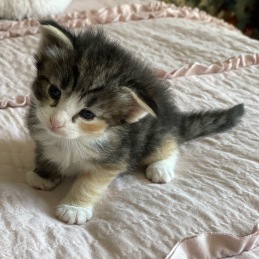 250527 Jag ber så hemskt mycket om ursäkt för att ni har fått vänta på nya kattungebilder! Men dom mår bra alla fem. Det är matte som inte riktigt fått ihop det med tiden och när jag väl har tänkt att NU ska jag ta bilder... Ja, då har dom sovit som stockar och jag har inte velat väcka dom. Sötnosarna har börjat att äta musch och babymousse. Rafael knaprar torrfoder. Dom är duktiga på toalådan. Visst, det händer små olyckor också men det är för att man inte riktigt hinner fram till toa. Dom är ju bara fem veckor.